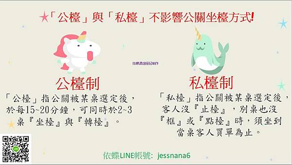 2.「公檯/私檯」是與客人的「收費標準」有關,而小姐的服務內容都相同。