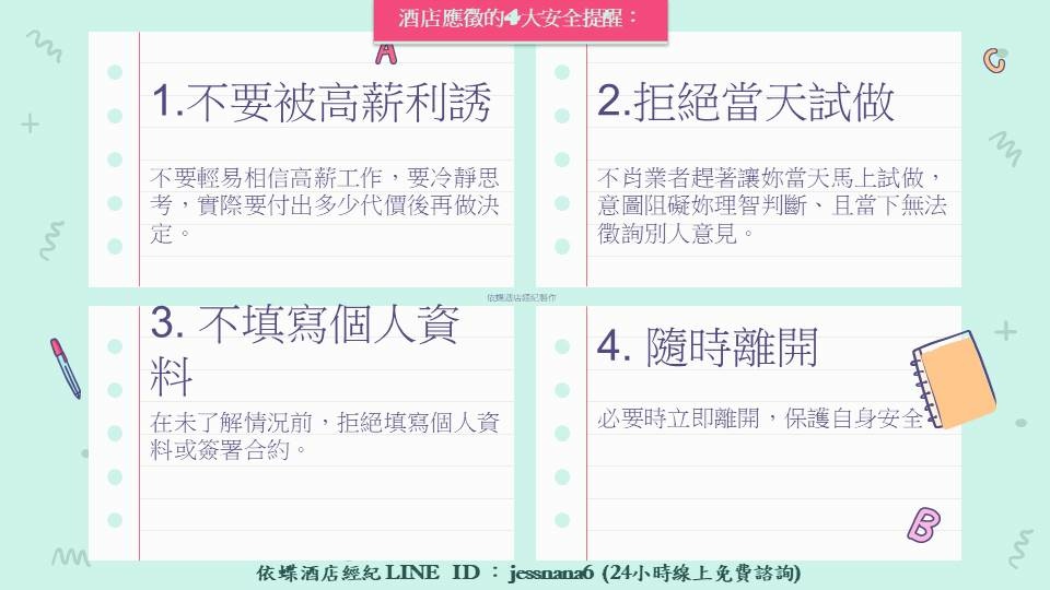 ◆依蝶酒店經紀另有專文提到,應對「框出」與「私約」的錦囊妙計,歡迎免費24小時詢問。◆