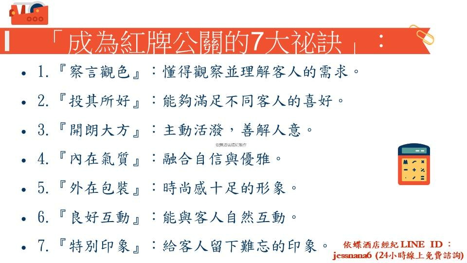 ◆依蝶酒店經紀提供20項職前訓練課程,歡迎線上索取相關資料,24小時專人線上服務。◆